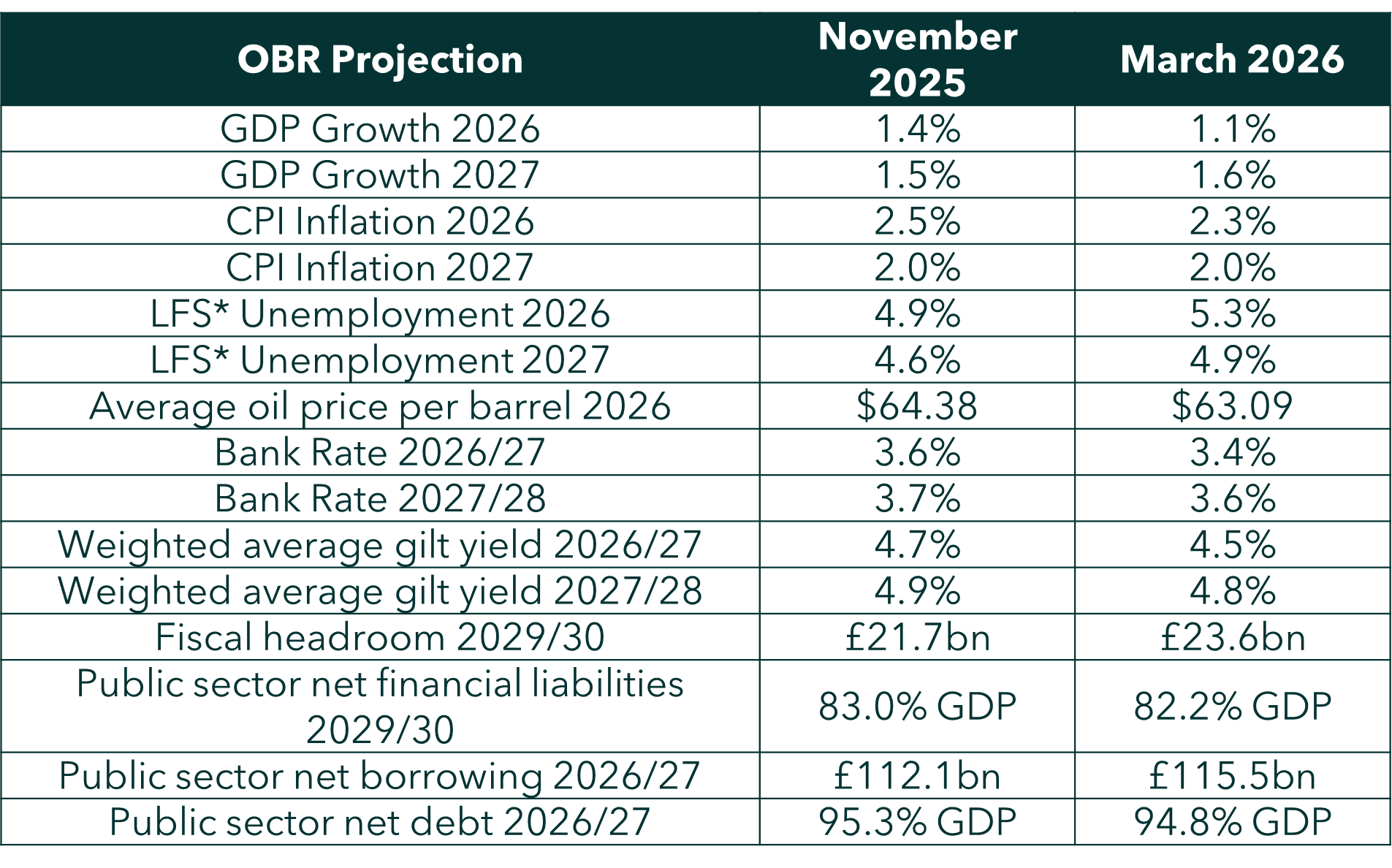 With little more than three months since the OBR published (slightly prematurely…) its last Economic and Fiscal Outlook (EFO), it was likely there would be few significant changes in the numbers.